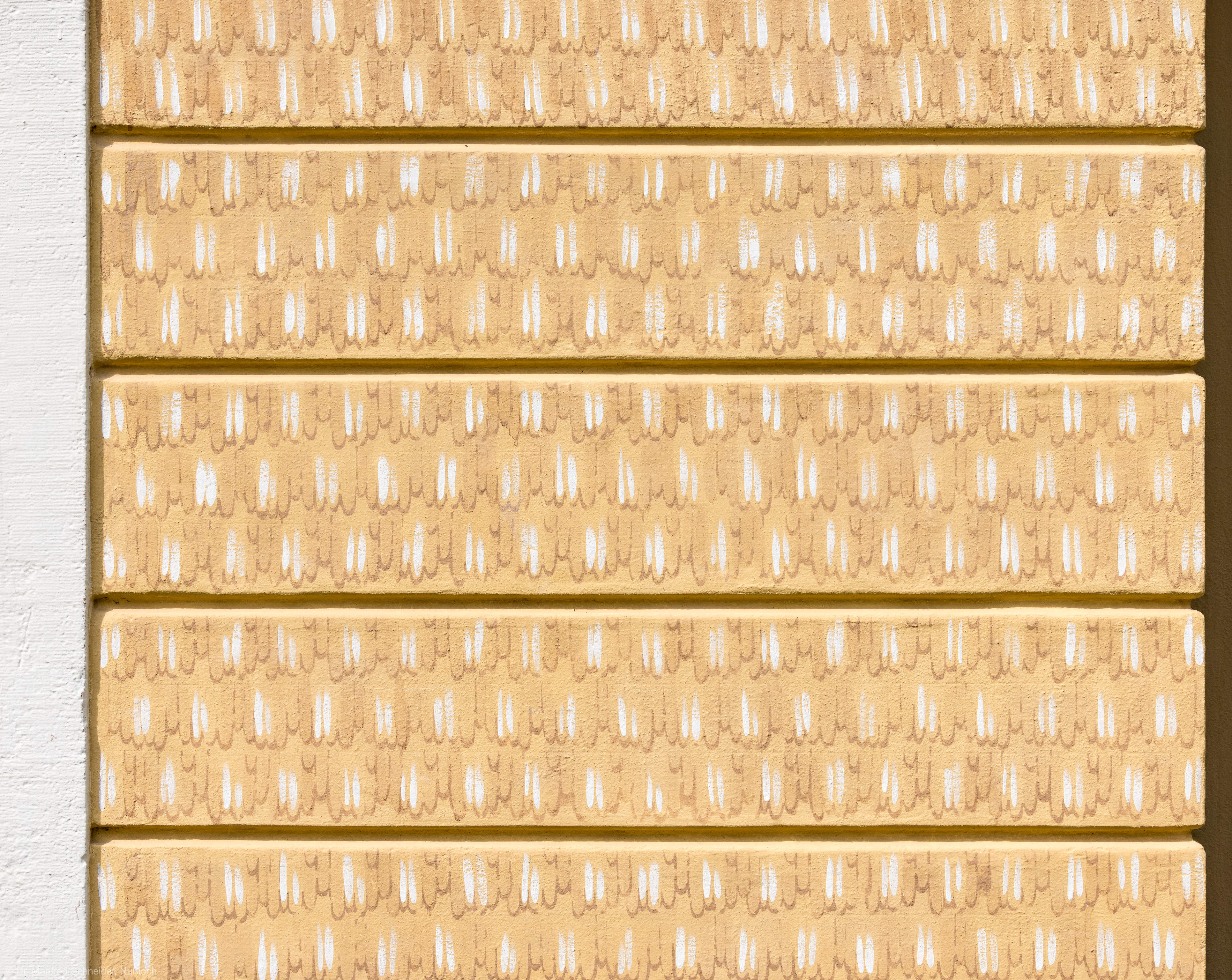 Schloss und Schlossgarten Schwetzingen - Garten - Badhaus - Von aussen - Westseite - Mittelrisalit, rechte Seite - Von Westen - Blick auf Felder mit Tropfsteinbemalung (Gesamter Bau: Länge x Breite ca. 18 x 15 Meter, Höhe ca. 11 Meter; Architekt: Nicolas de Pigage (1723-1796); Bauzeit: 1768-1772; Gesamtinstandsetzung innen und außen: 1999-2006) (aufgenommen im Mai 2023, am späten Vormittag)