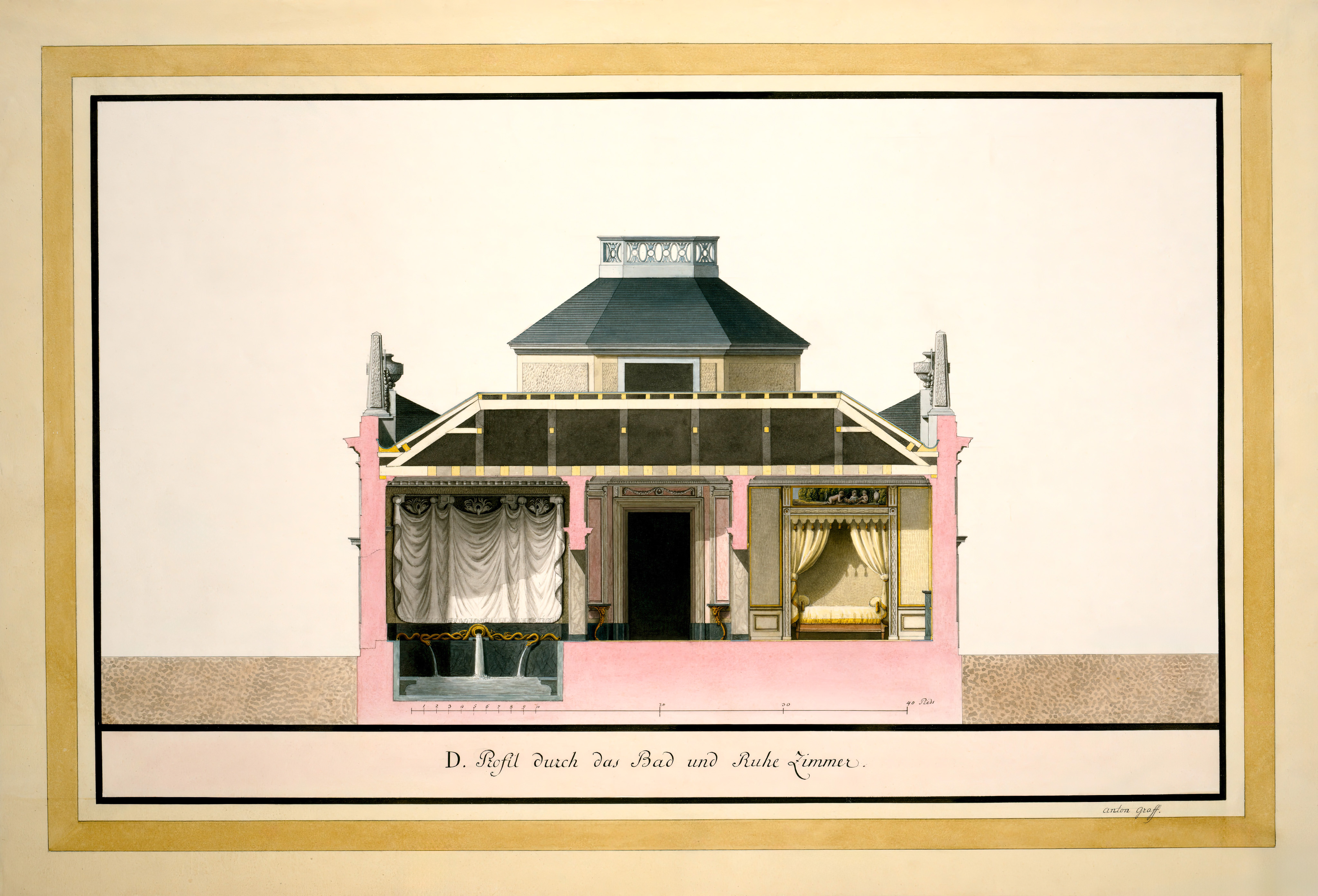 (Bildnachweis: Graff, Anton: Schwetzingen, Badhaus, Schnitt, 1799, GK II (1) o. Nr. / SPSG / Fotograf: Daniel Lindner)