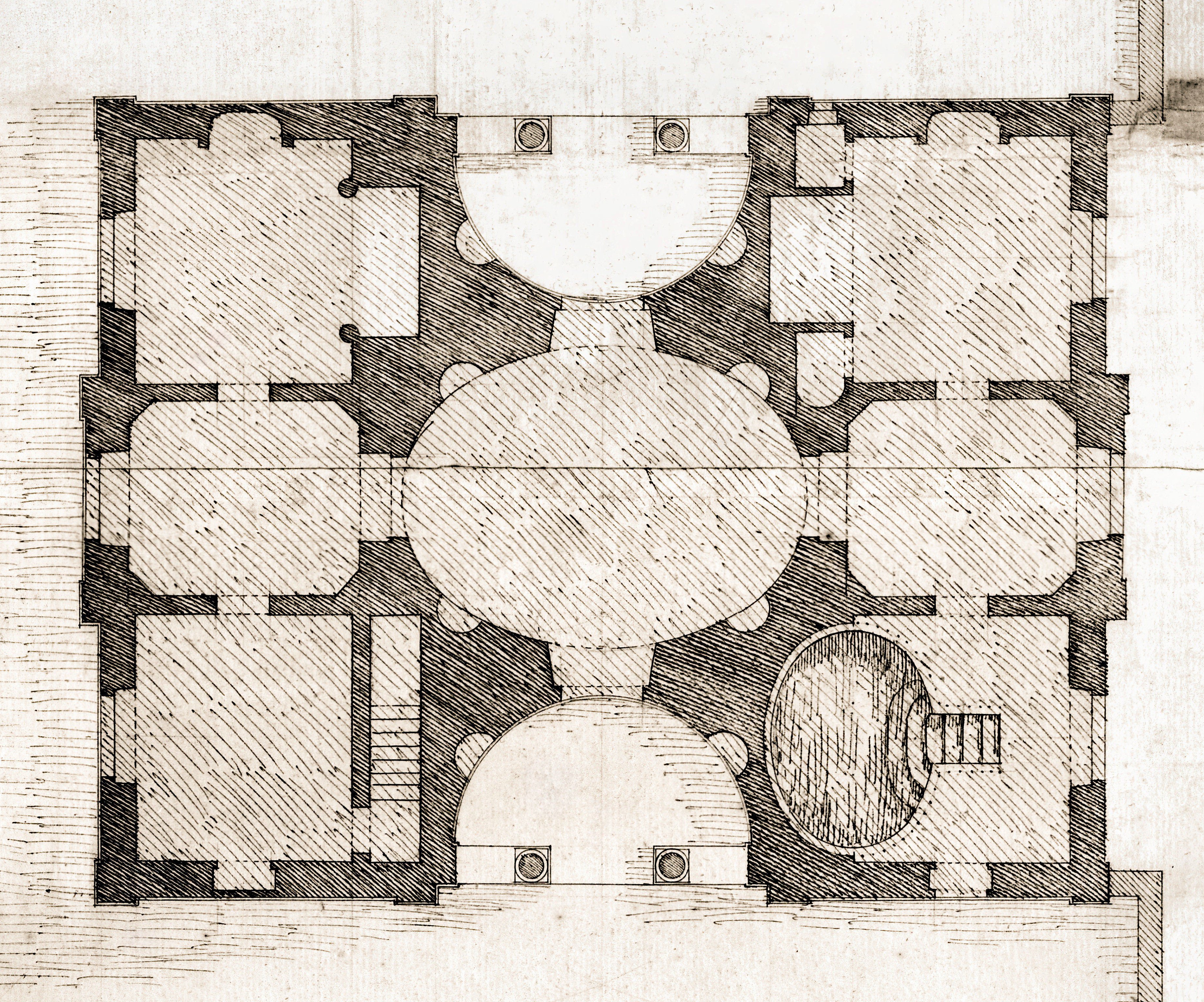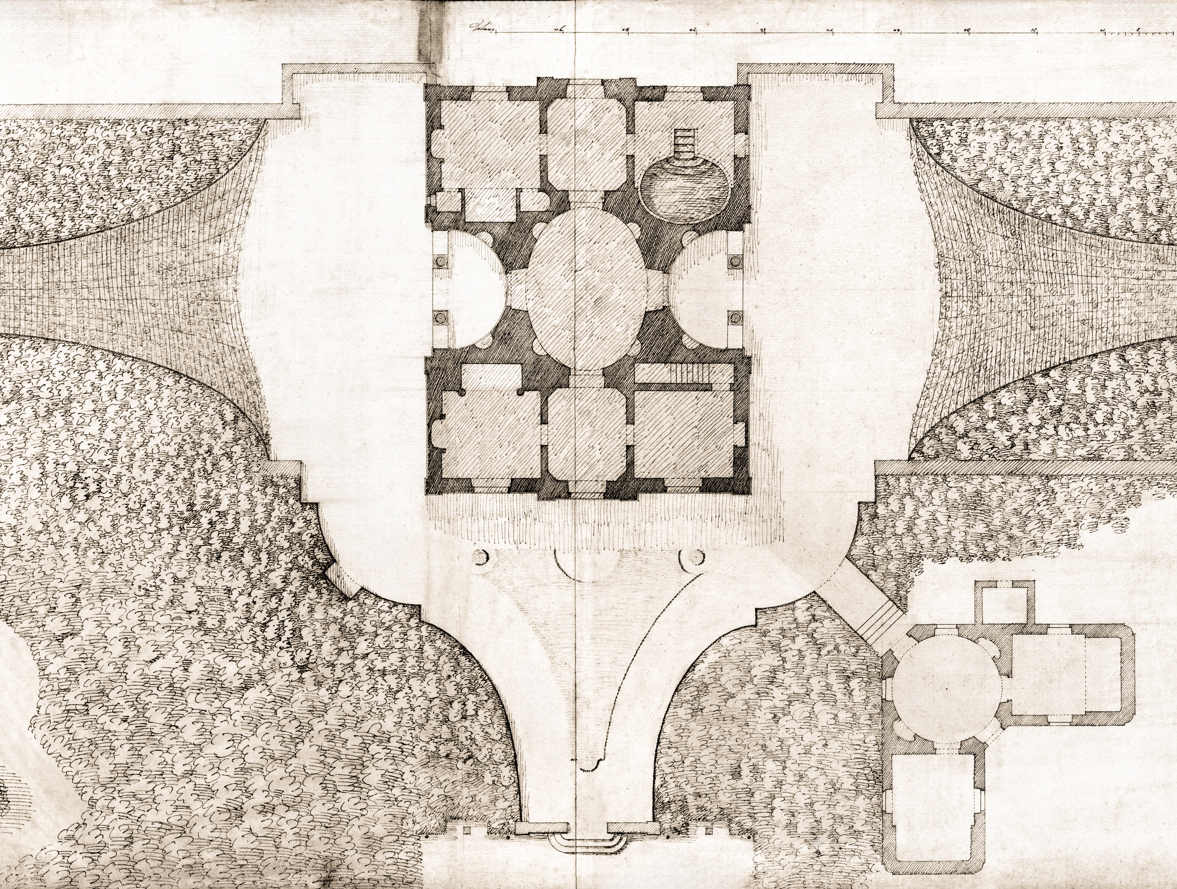 (Bildnachweis: Graff, Anton: A. Grund Plan des Bad Hauses in dem Churfürstlichen Garten in Schwetzingen, 1799, GK II (1) o.Nr. / SPSG / Fotograf: Daniel Lindner)