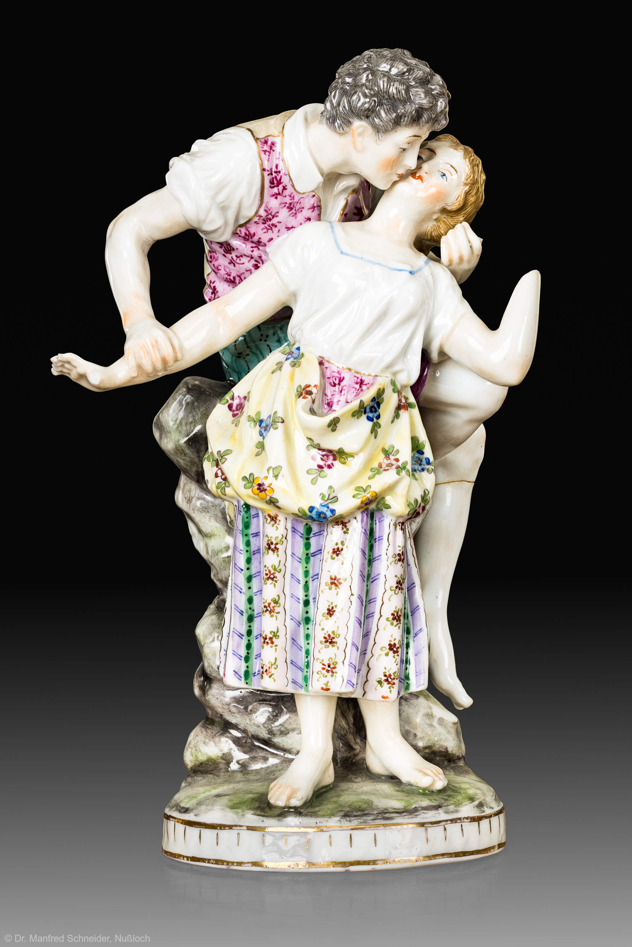 Schloss und Schlossgarten Schwetzingen - Schloss - Mittelbau - Von innen - 1. Obergeschoss - Appartment des Kurfürsten - Schlafzimmer - Nordwand, Kommode - Porzellanplastik / Frankenthaler Porzellan (aufgenommen im Januar 2026, am Nachmittag)